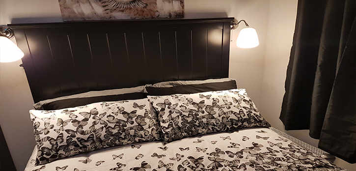 Here shows bedroom modified with new lights and headrest installed by us.
