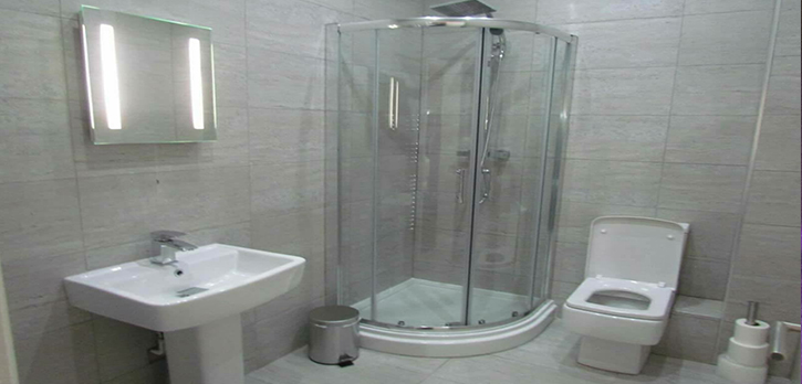 Here shows wall tiles, shower, toilet, sink and led mirror done by us.