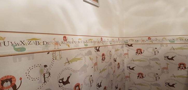 Here shows half paint and wallpaper done in a children bedroom done by us.