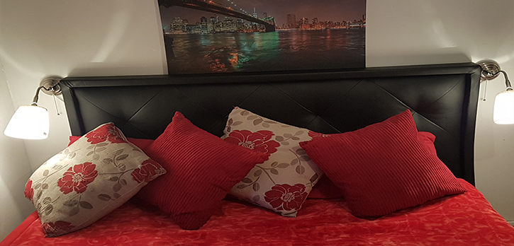 Here shows bedroom modified with new lights and headrest installed by us.