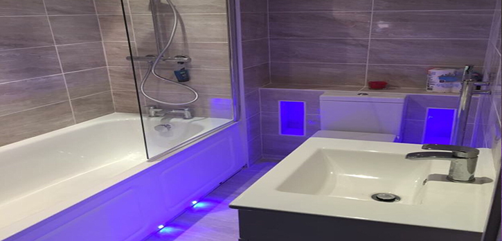Here shows wall tiles, shower, toilet, sink and led mirror done by us.